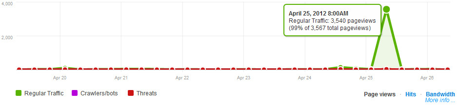Apparently I was afk for “Free Website Stress Test Day”. That’s too bad, too, since I liked watching it get pummeled by far more than just “3500 Unique Visitors”. Would love to download the raw data on this one. Wonder who gave me these pings of love…